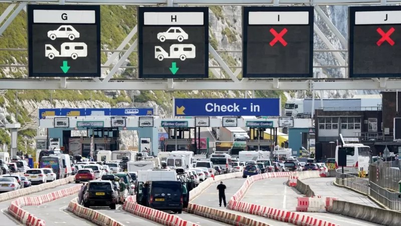 Les voyageurs qui cherchent à traverser la Manche à Douvres sont confrontés à des attentes de 30 minutes pour être traités aux contrôles aux frontières. Service de radiodiffusion britannique pour le sud est