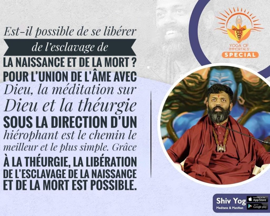 Est-il possible de se libérer de la servitude de la naissance et de la mort ? L’âme est une partie de Dieu, mais nous devons renaître encore et encore à cause de nos actes. Le hiérophant de l’ordre de Śiva, le très révérendissime abbé Śivānanda et le mystagogue, le révérend frère Īśāna disent que lorsque la pensée du théurge devient zéro, l’âme rencontre Dieu. Mais ce n’est pas facile, car à cause des actions peccamineuses, l’homme a subi plusieurs naissances. Ce processus dure de nombreuses années. La série de naissances et de mort continue. La question est comment s’en débarrasser. Il n’y a pas d’autre solution que de la méditation sur Dieu et la théurgie. Le péché des anciennes vies est absous. Le hiérophant est nécessaire pour mener des opérations hermétiques. Le hiérophant de l’ordre de Śiva éveille facilement la sagesse des théurges et prépare le chemin de la prise en conscience de Dieu pour le théurge sans apparat. Le théurge achève son voyage spirituel. Dans ce voyage il y a l’éveil de l’âme et le théurge atteint son but.