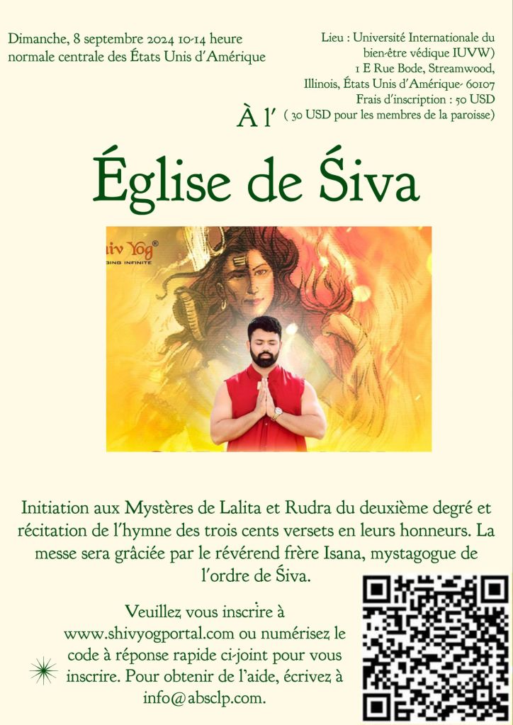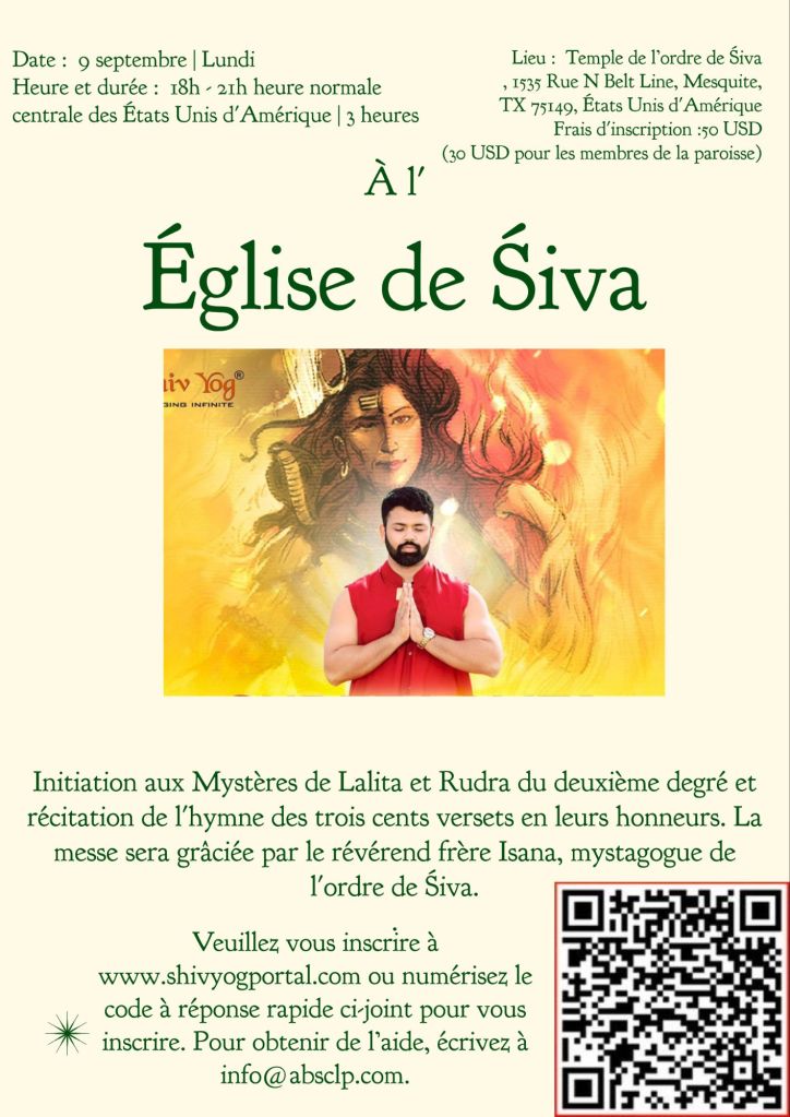 La messe sera célébrée par le révérend frère Īśāna, mystagogue de l’ordre de Śiva