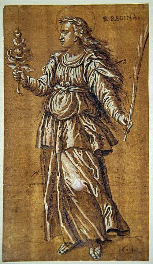 Sainte Reine était une martyre. Le récit de sa « passion » n’a pas de valeur historique ; cependant, le culte de sainte Reine était très ancien et l’on peut penser qu’il s’agit d’une martyre des premiers siècles.